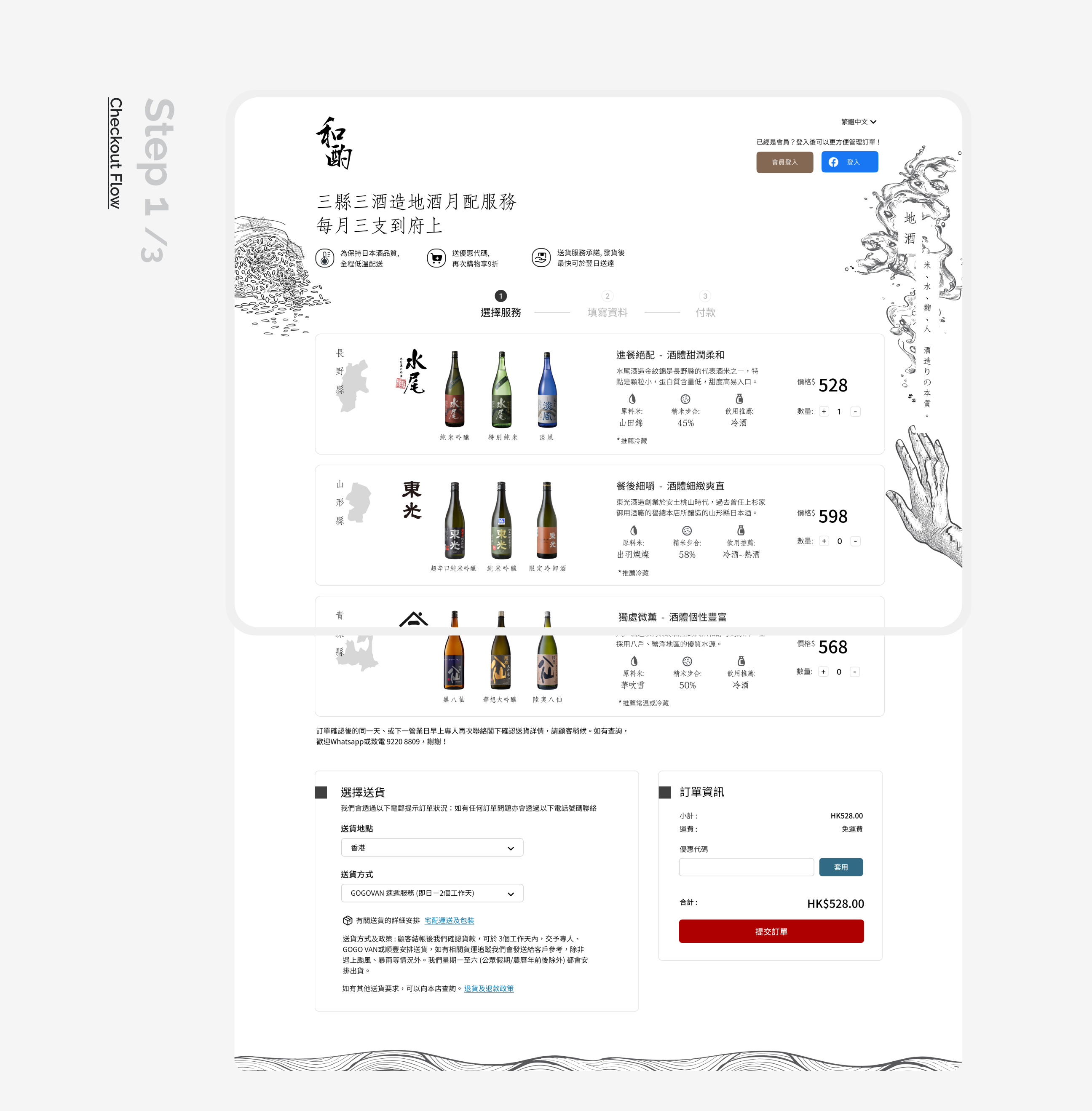 The main objective of the project was to create an effective and engaging monthly sake delivery campaign to increase sales in the online store. The campaign was designed to allow the target audience to experience three entry-level local sake (地酒) from Japan's regions, seamlessly guiding customers to make purchases on the website to build intrigue and demand for new services.
