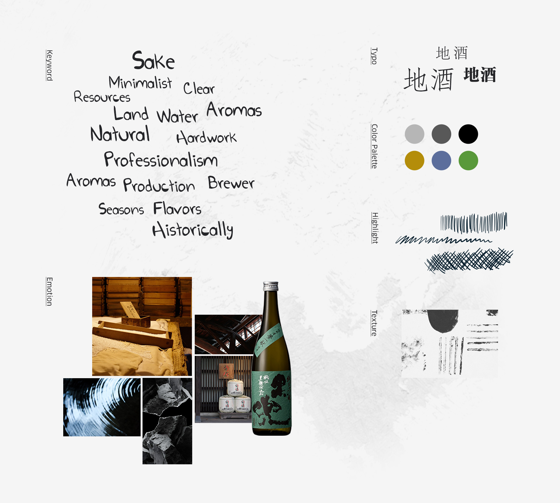 To further convey this message to the target audience and make it easy to remember when touching on social media, I designed the three key brewing processes visual elements of “Rice Polishing”, "Koji Making" and “Fermentation” which specific technics about how to brewing good sake. This convey the sake brand's deep connection to the land, Technique, Hard work and Authenticity. Using the descriptive background images and features of "酒造" combined with the raw style of the sketches and pattern, it shows a journey of discovery and respect for the terroir. These sakes are alive.